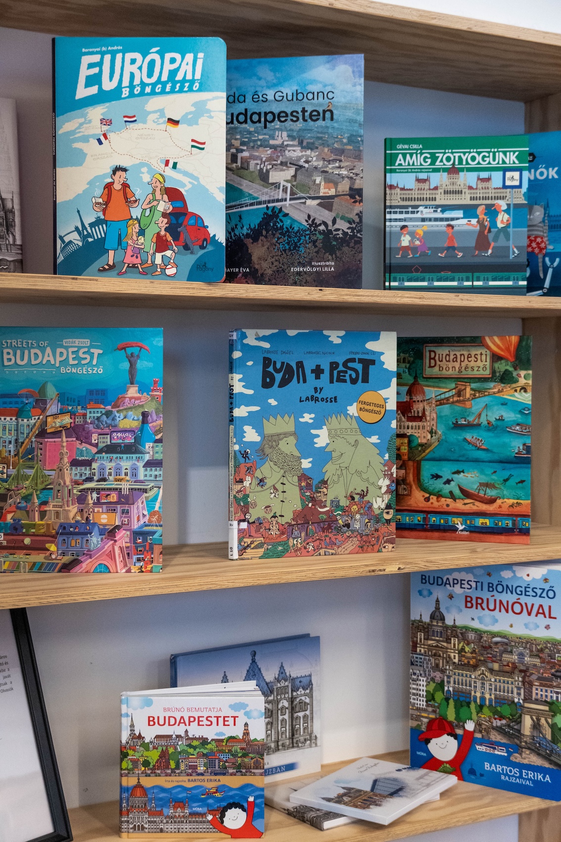 A kiállításon a látogatók számos, a művészek által illusztrált, Budapestről szóló könyvbe is belelapozhatnak
