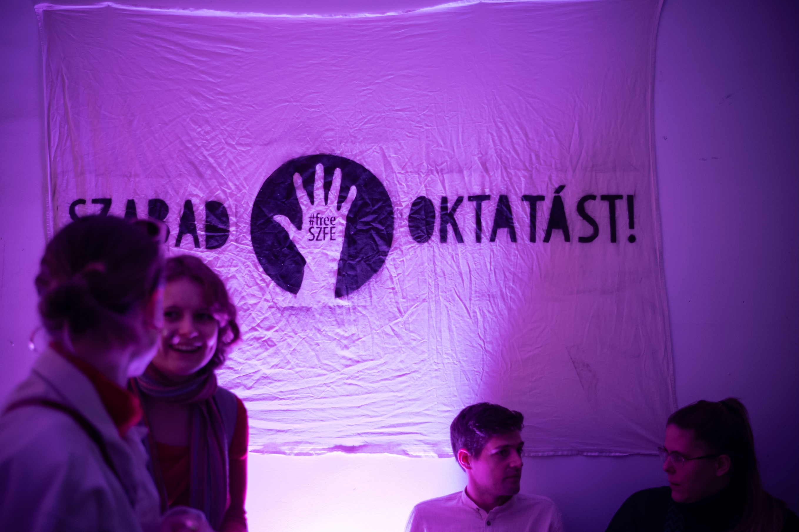 Nyitókép: Diákok és oktatók fújják fel a falra az intézmény nevét (a nyitóképet és a cikkben szereplő fotókat Todoroff Lázár készítette)