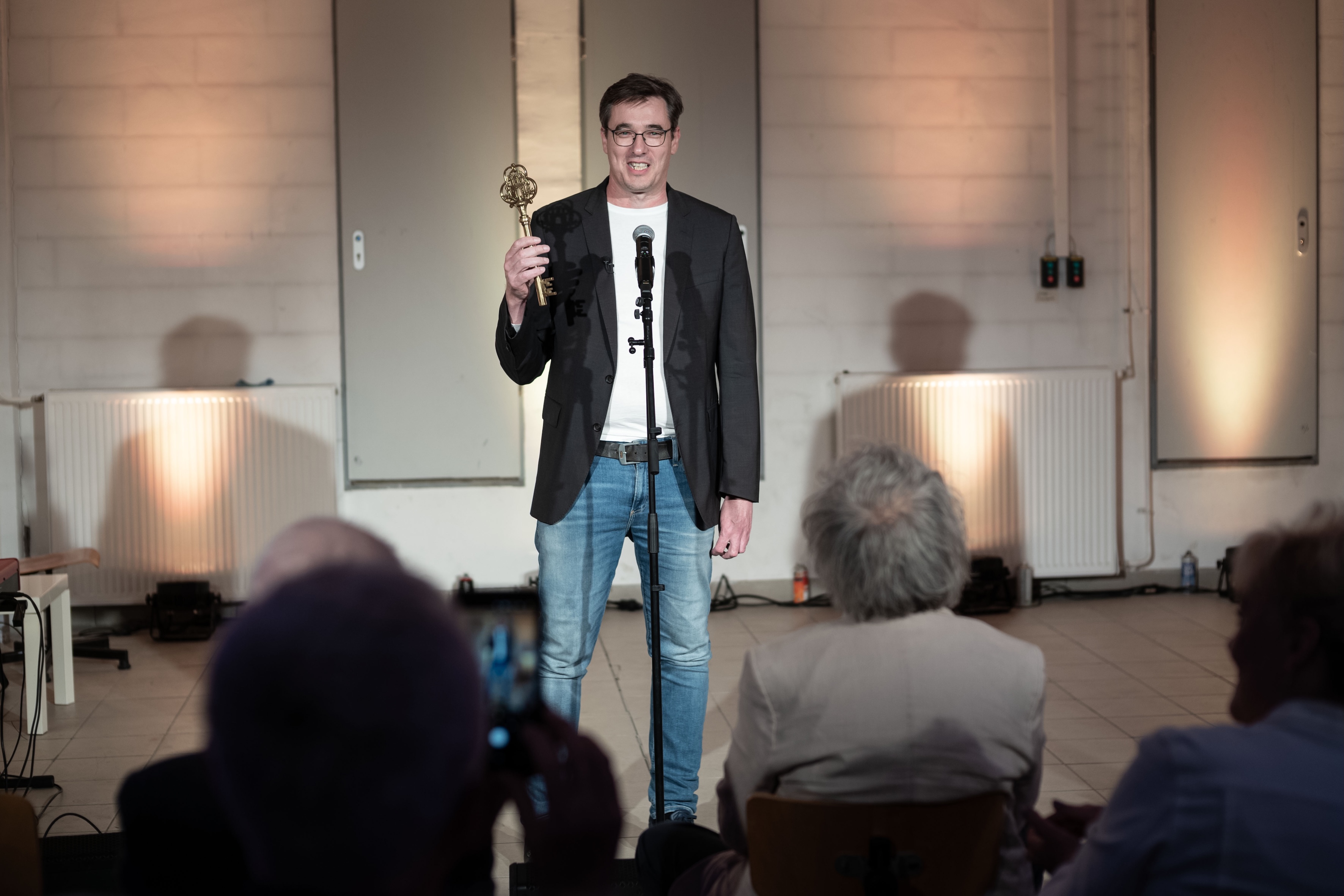 Karácsony Gergely főpolgármester az épület kulcsával