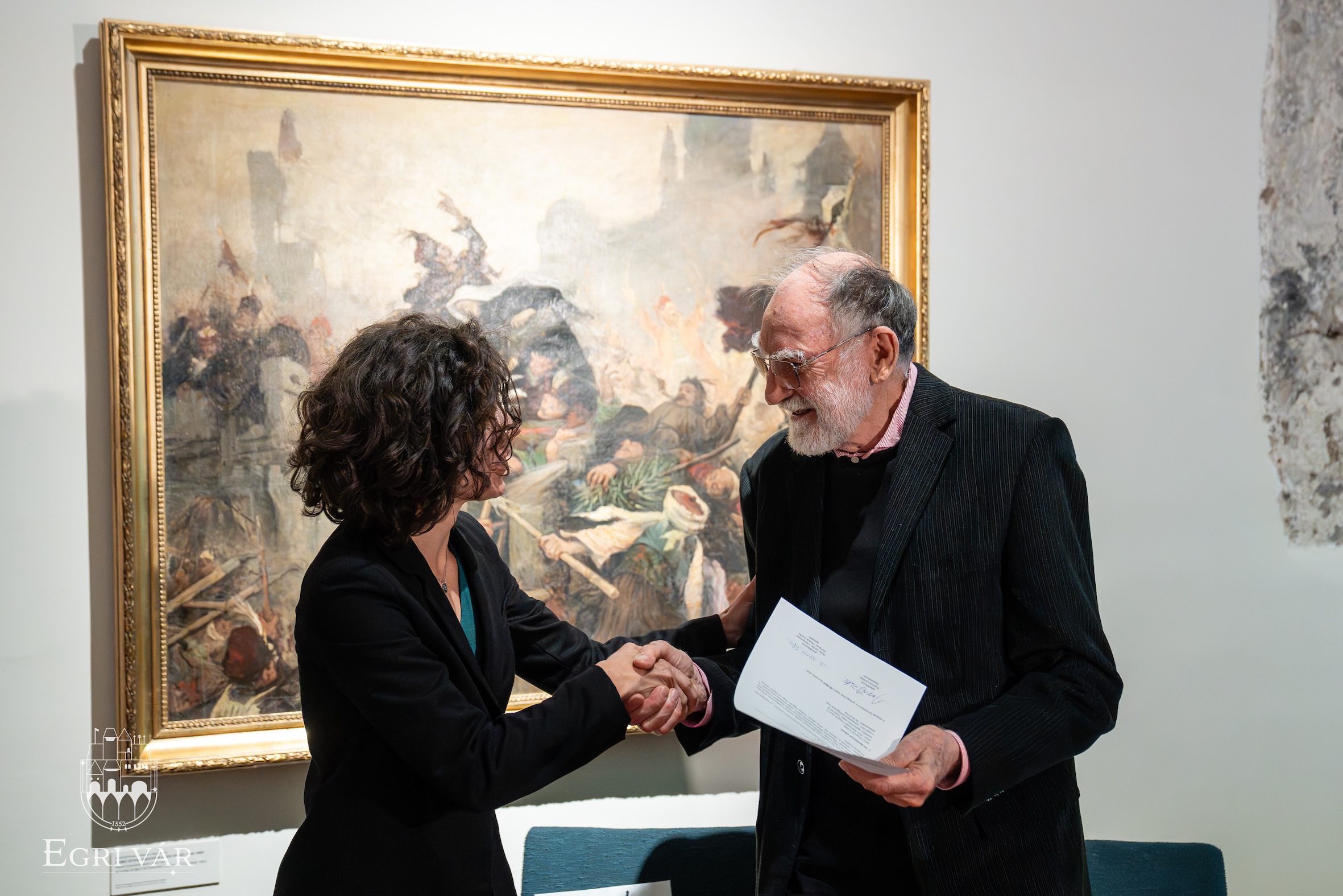 Tavaly adtuk át az egri vár történetét bemutató új állandó kiállításunkat, amely utolsó helyiségében egész tematikai egységet szenteltünk a vár kultuszának: ebbe illeszkedik Popovits Zoltán szobra is. Művészettörténeti megítéléséről nem szeretnék beszélni, mert nem én vagyok a hiteles és szakavatott ebben – a művet Wehner Tibor művészettörténész méltatta az átadáskor. A szobor az állandó kiállításon kapott helyet, hiszen a várat ma is övező kultuszt bizonyítja: még 2025-ben is számos alkotót megihlet ez a történelmi emlékhely. Végtelenül kedves és megtisztelő, hogy a művész nekünk ajándékozta a szobrot.