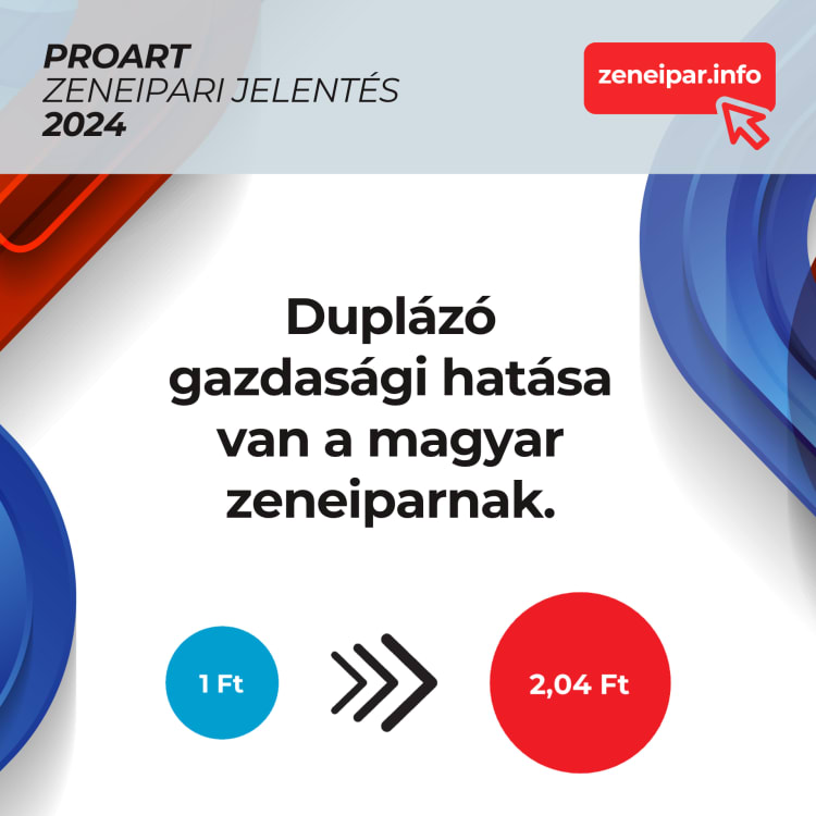 A jelentés egyik legfontosabb megállapítása, hogy a magyar zeneipar minden 1 forintnyi közvetlen befektetésből összesen 2,04 forintnyi gazdasági aktivitást generál, vagyis több mint kétszeresére növeli a teljes gazdaságban keletkező értéket. Ez a multiplikátorhatás nem sokkal marad el az Európai Unió zeneiparának egészére mért szorzótól (2,2).