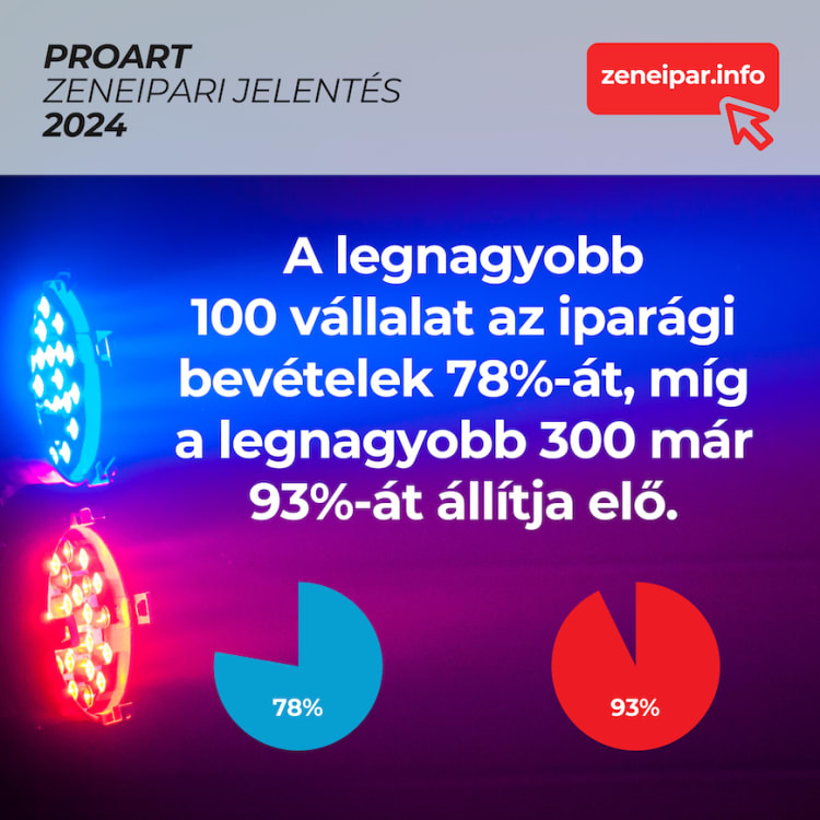 Ugyanakkor a magyar zeneipar rendkívül koncentrált piac is, ahol az árbevétel túlnyomó részét néhány nagy szereplő termeli. A legnagyobb száz vállalat az iparági bevételek 78 százalékát, míg a legnagyobb háromszáz már 93 százalékát állítja elő. Vagyis a kisebb vállalkozások összességében csak marginális piaci részesedéssel rendelkeznek.