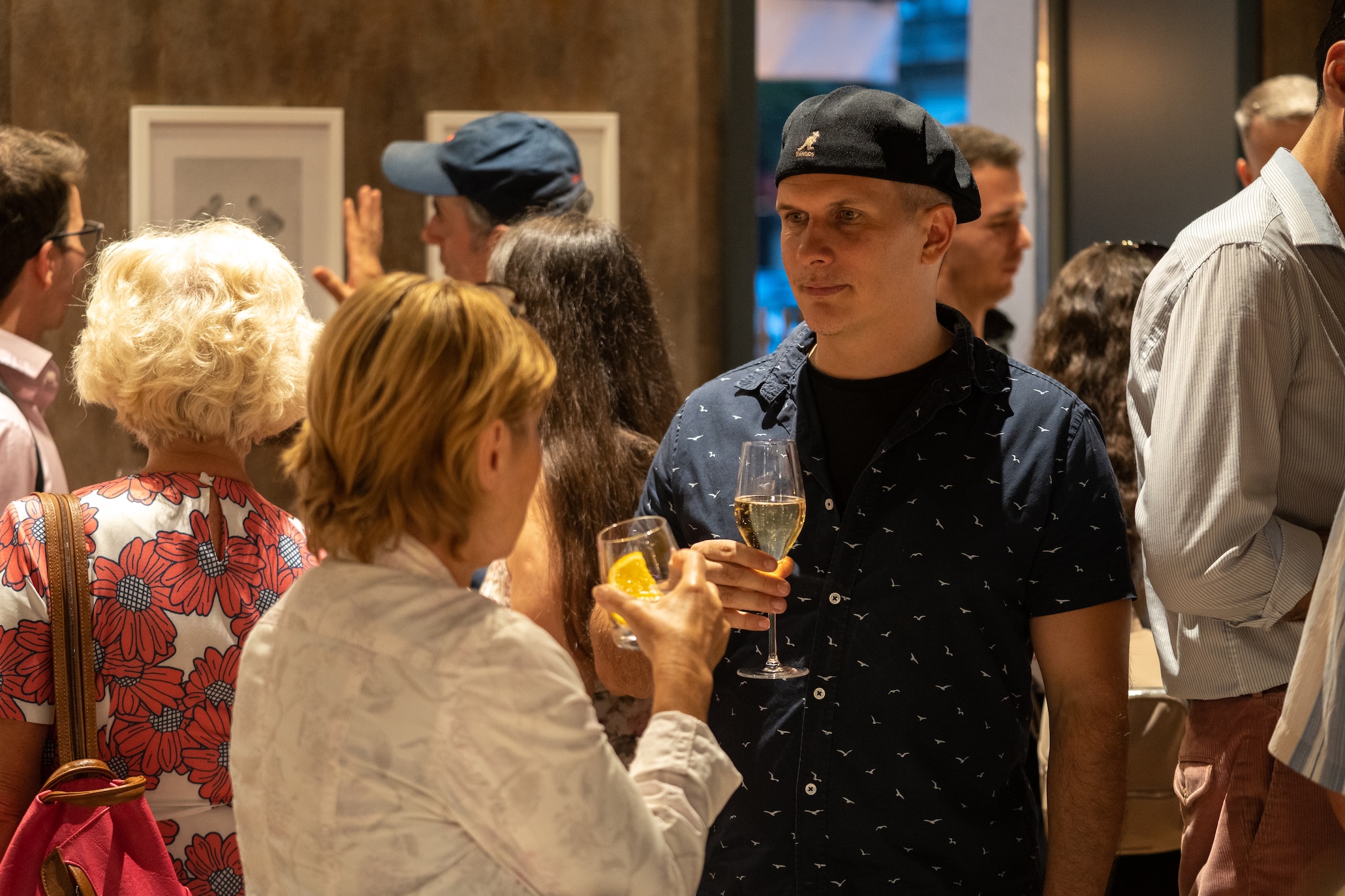 F. Cs.: Emlékezetes esemény volt a kiállításmegnyitó, olyanok is eljöttek, hogy megnézzék a műveket, akik egy kereskedelmi galériában nem biztos, hogy megjelentek volna. Bárki beléphetett – a szálloda vendégeitől a bárban fogyasztókon át az utcáról „beesett” emberekig –, és ebben az élő térben kerülhetett kapcsolatba a művekkel. Sokakkal beszélgettem és azt éreztem, senki nem fáradt el az este végére, sőt a művek felkeltették érdeklődésüket a többi munkánk iránt. Jó volt ezt látni egy olyan korban, amikor a felgyorsult világ mellett a figyelem, a fókusz lankad, állandóan rohanunk, nincs idő a művészet befogadására, megértésére. Egyre kevesebbekben él az igény, hogy megmártózzanak a művészet mögöttes dimenzióban és összefüggéseiben. Pedig egy-egy kiállítás, koncert – tulajdonképpen bármely kulturális esemény – aktív gondolkodást igényel és érdemel. A megnyitón ezt a figyelmet tapasztaltam meg.