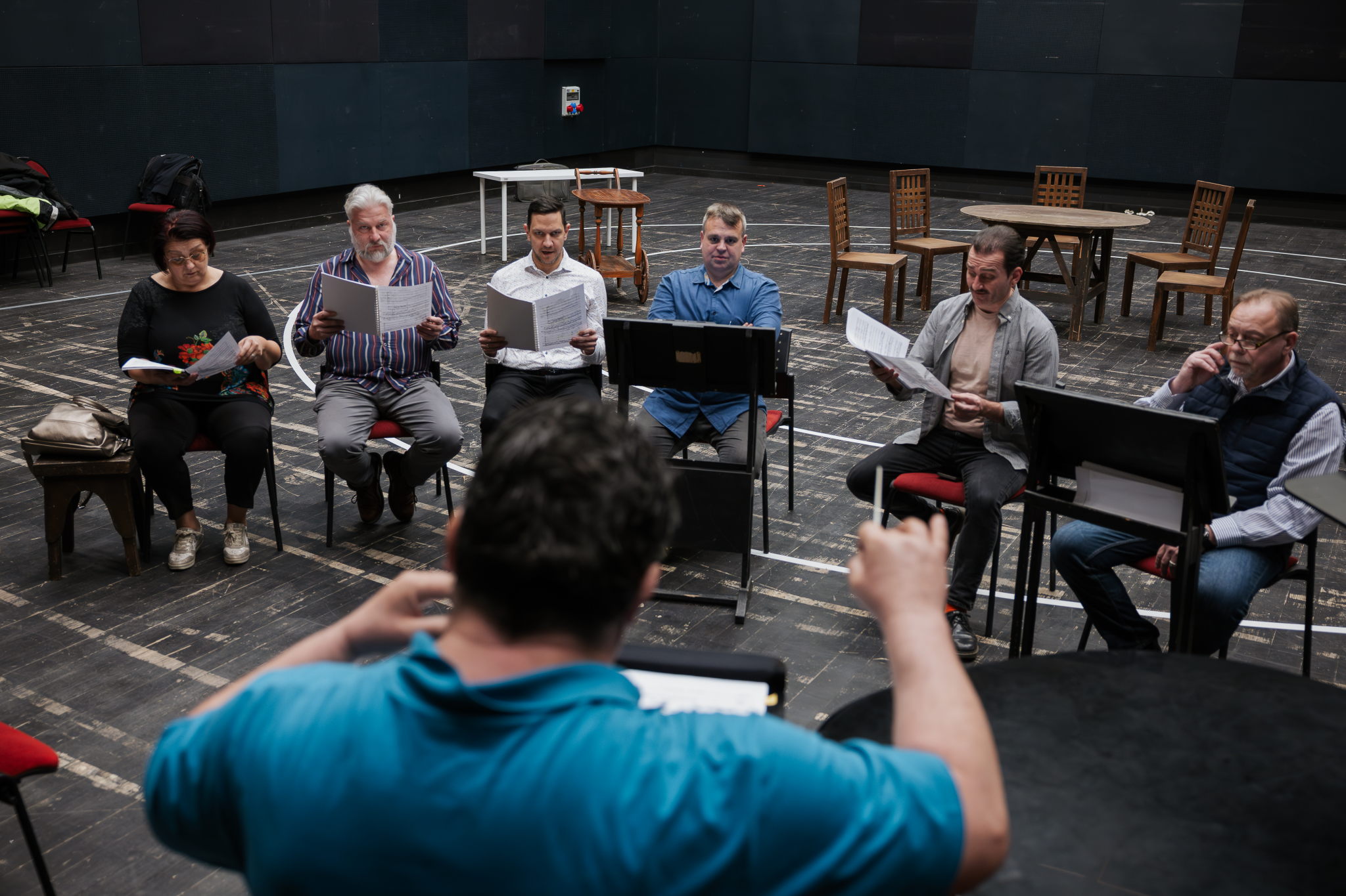 Nyitókép: Szabó Máté Az ítélet című előadás próbáján (a nyitóképet és a cikkben szereplő fotókat Nagy Attila készítette)