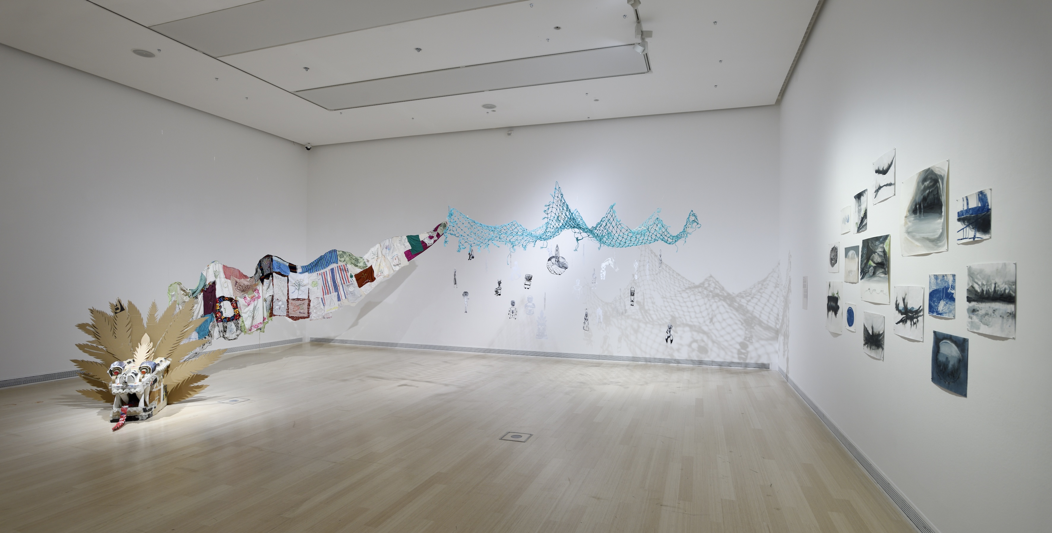Nyitókép: Chilf Mari és Daniela Jáuregui Medicine Snake Project installációja a Ludwig Múzeum Finom illesztések – Golden Repair című tárlatán (fotó: Rosta József / Ludwig Múzeum)