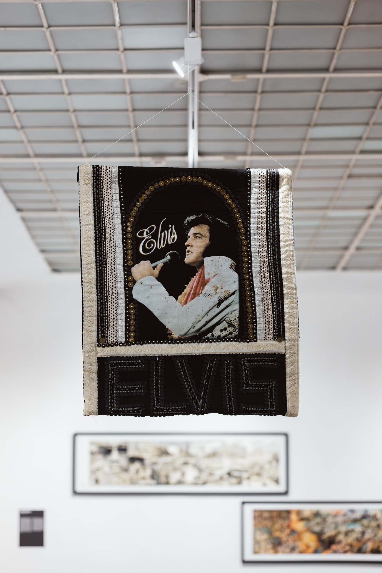 Úgy válogattunk, hogy az art brut vagy photo brut kategórián belül híres alkotók, nagy nevek is helyet kapjanak. Például Miroslav Tichý: ő magának épített kamerákat, a lehető legszerényebb körülmények között élt, kivonult a munka vezérelte mindennapokból, otthon laborálta képeit a maga építette sötétkamrájában. Különleges életutat járt be. Ő talán a terület legismertebb képviselője. A korszakot meghatározó svájci kurátor, Harald Szeemann is kiemelten foglalkozott vele. Tichý munkáit láthatjuk az első teremben, mellette pedig nő művészek munkáit is, mert fontosnak tartottuk, hogy már a kiállítás elején megmutassuk e sokszínű anyag keresztmetszetét. A második térben mániás viselkedésformákhoz kapcsolódó művek vannak, akadnak köztük megszállottak, rajongók és autizmussal élők repetitív alkotásai is. A harmadik térben szupersztárokról készített portrék felhasználásával készült különleges, vegyes technikájú művek szerepelnek: Elvis Presley, Marilyn Monroe, Sylvester Stallone, Wesley Snipes, Michael Jackson képmásai láthatók. Nyilván korlátoz bennünket a tér nagysága, de igyekeztünk megmutatni a 2019-es kiállítás összetettségét. Úgy érzem, sikerült.