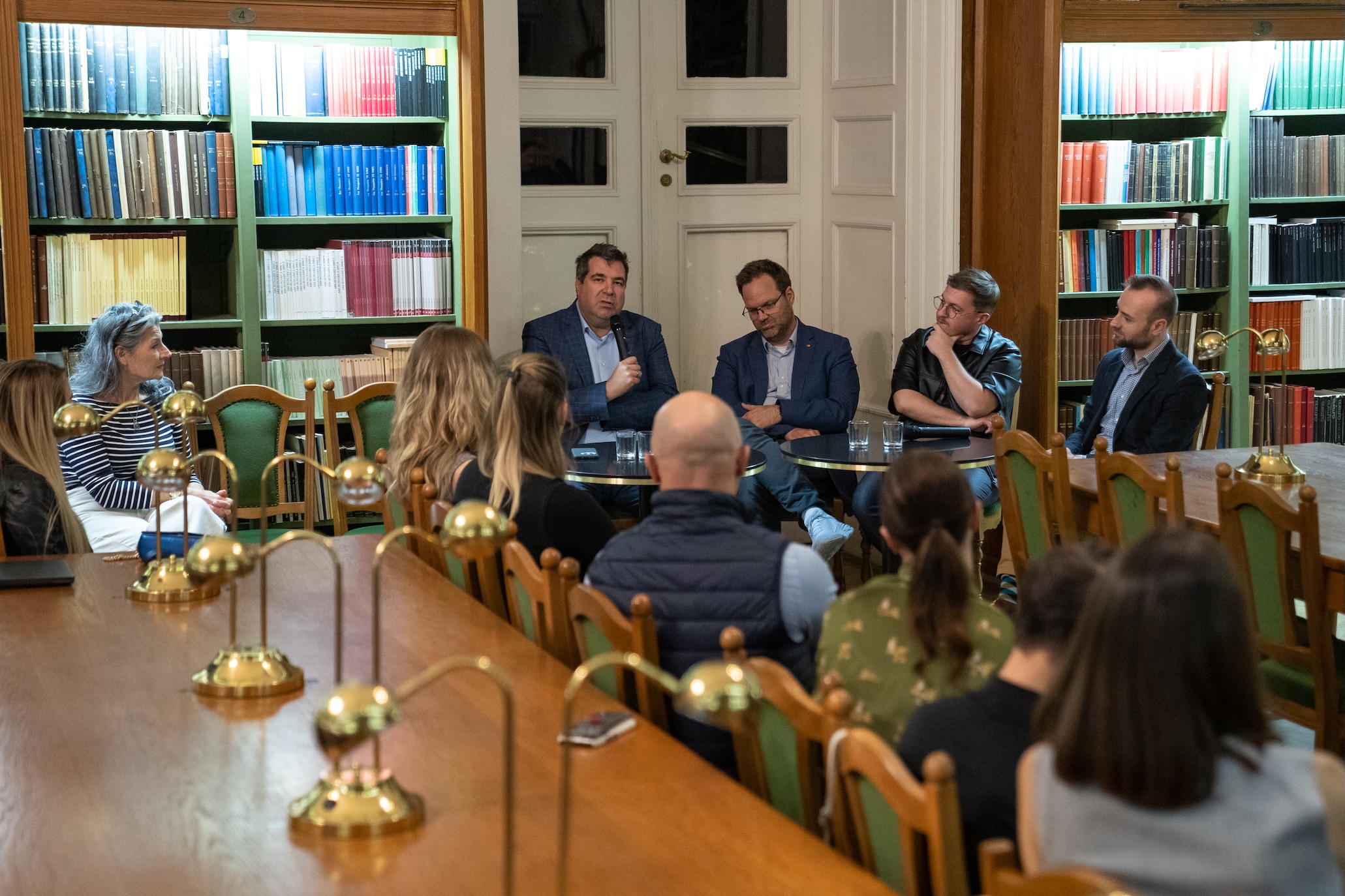 A beszélgetésnek különleges helyszín adott otthont: a Magyar Nemzeti Múzeum könyvtára. Az esemény előtt az intézmény munkatársai vezették körbe a hallgatóságot az épületben.