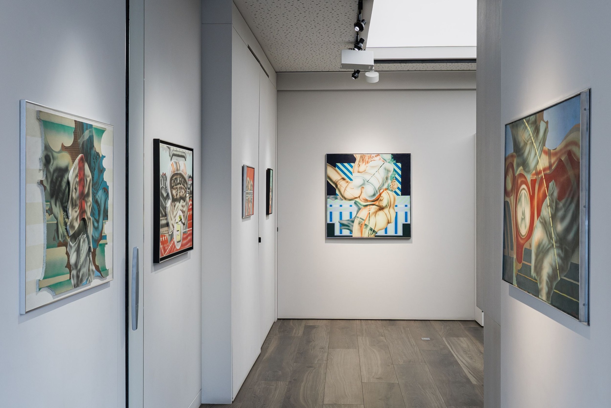 Nyitókép: Részlet a tárlatból. A falon a művész Flop, illetve Unisolo című alkotása (a nyitókép és a cikkben szereplő fotók forrása a Nemes Galéria)