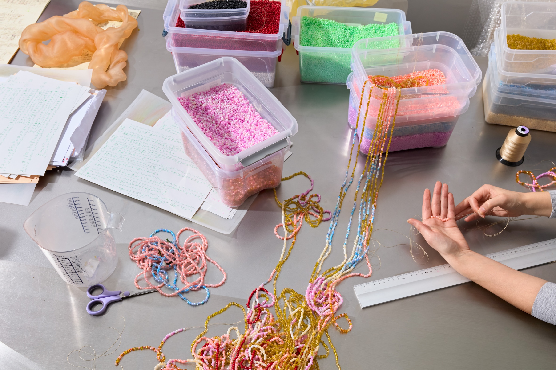 Az alkotó évek óta készít az ipari forradalmak előtti kézműves technikákat megidéző eljárással kis- és nagyméretű gyöngyfüggönyöket. A /formatíva különlegessége, hogy ezúttal nem elsősorban az élettani működések tematikus megközelítése kerül előtérbe, hanem a létrehozás folyamata is. A kiállítás központi műtárgya az Éberség (I-II.) című alkotás, amely második része egy performatív installáció keretében, a látogatók szeme előtt készül el. A gyöngyfüggöny létrehozása mintegy másfél hónapot igénylő, megfeszített munkatempó és fokozott koncentráció eredménye, így egyúttal az ipari forradalmak előtti manufaktúrák kézműves termelésére is reflektál.