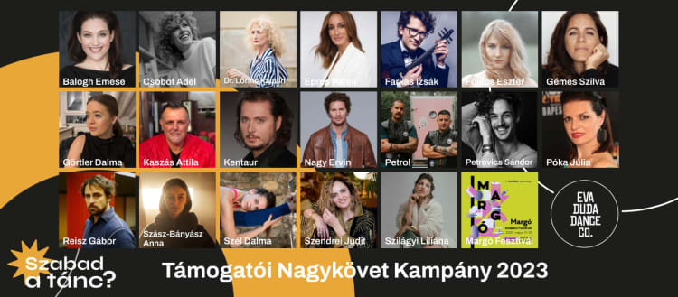A harmincnapos kampány során a Duda Éva Társulat biztos működéséért, a szabad táncművészetért áll ki a húsz nagykövet.